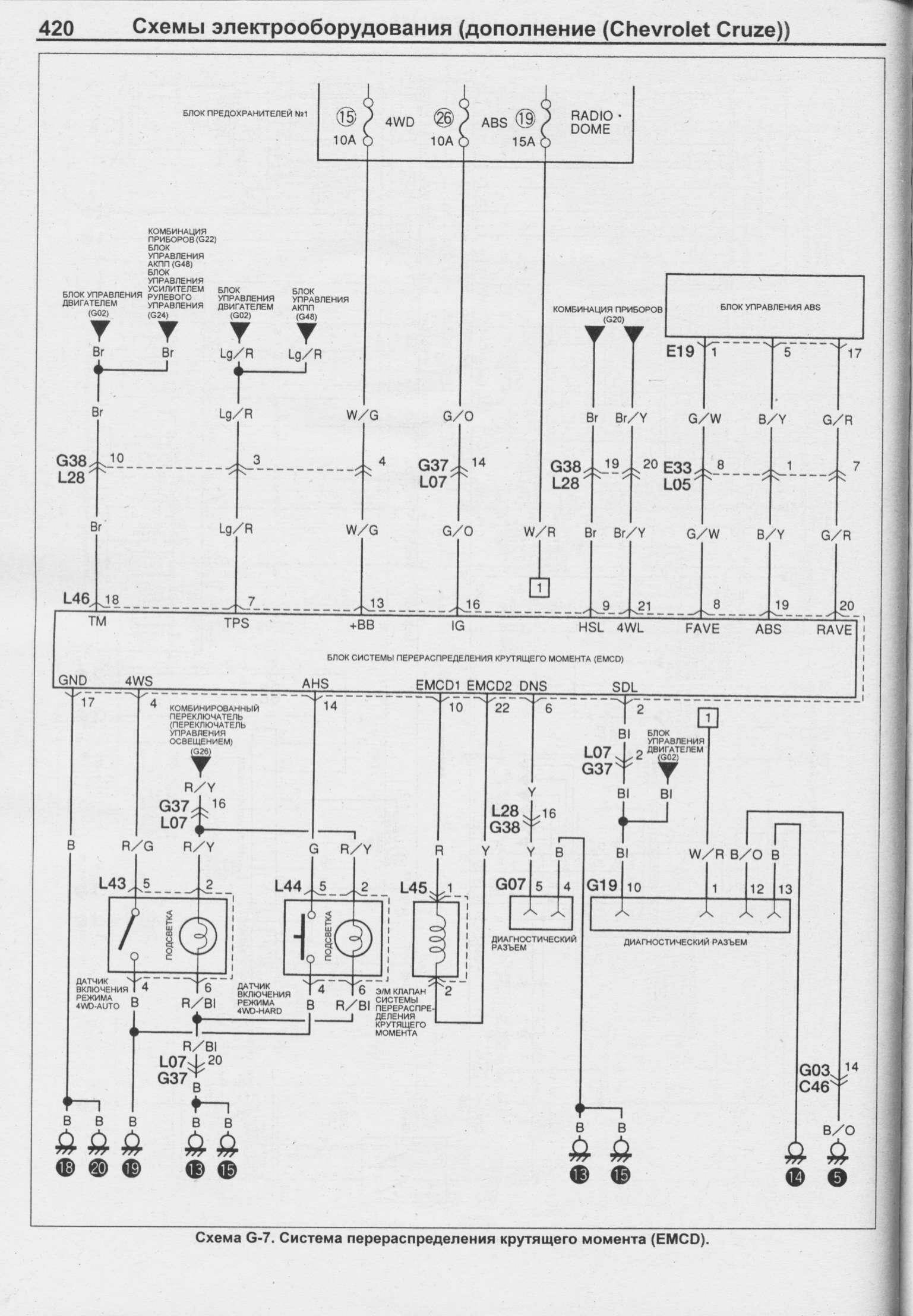 Схема подсветки Chevrolet Cruze