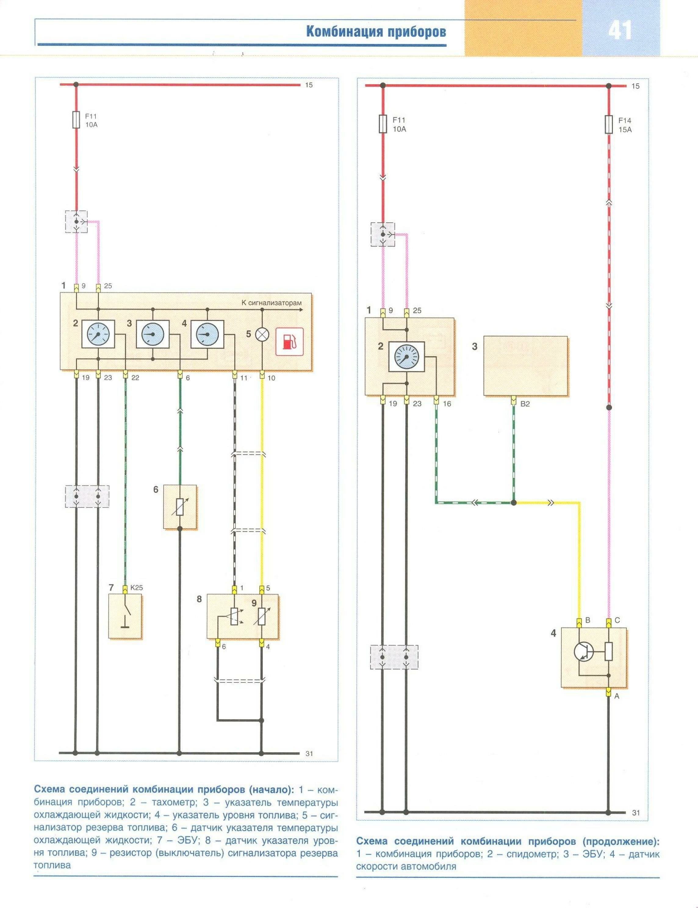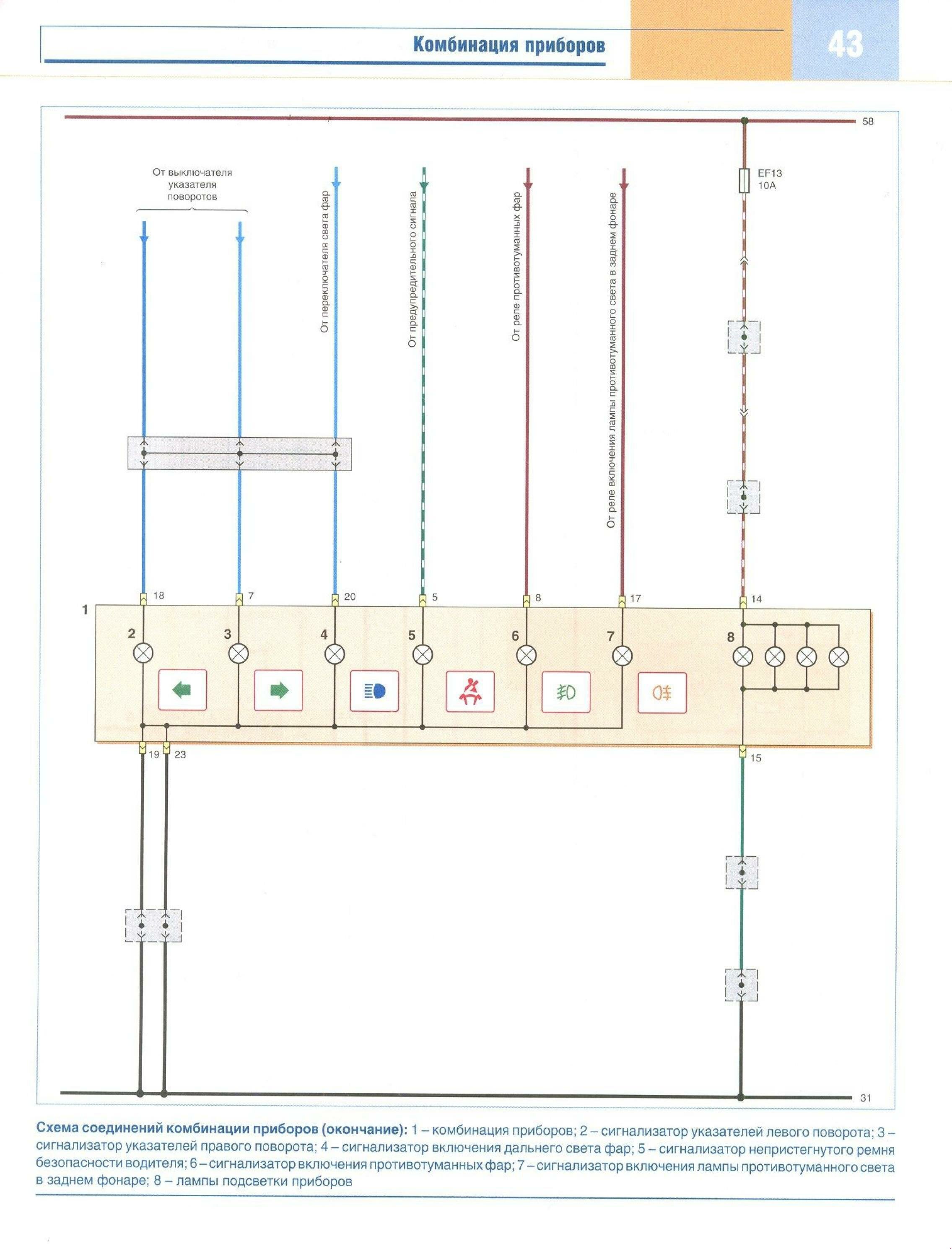 Схема всего соединения комбинации приборов на Ланос