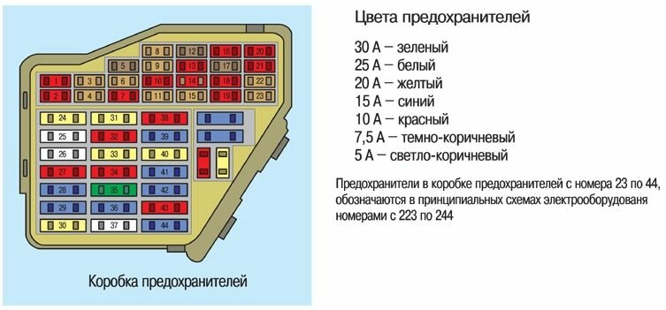 Электросхема коробки предохранителей, сигнал торможения авто