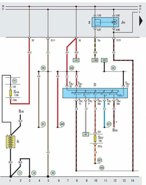 S134 – предохранитель в коробке предохранителей на аккумуляторной батарее;