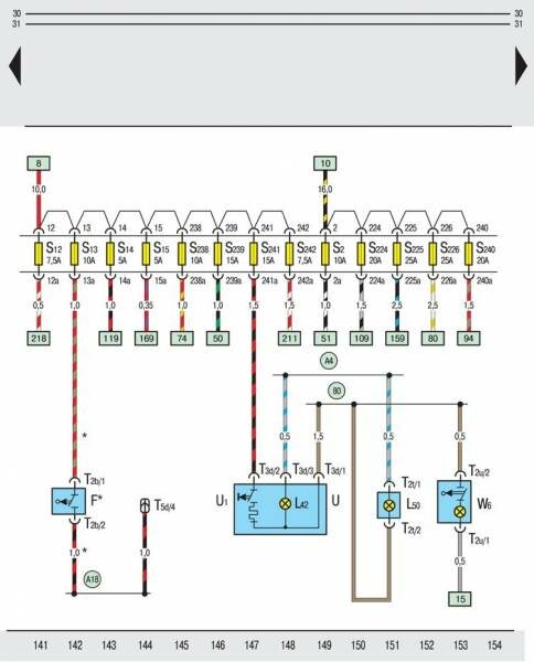 L50 – лампа накаливания для освещения пепельницы сзади;