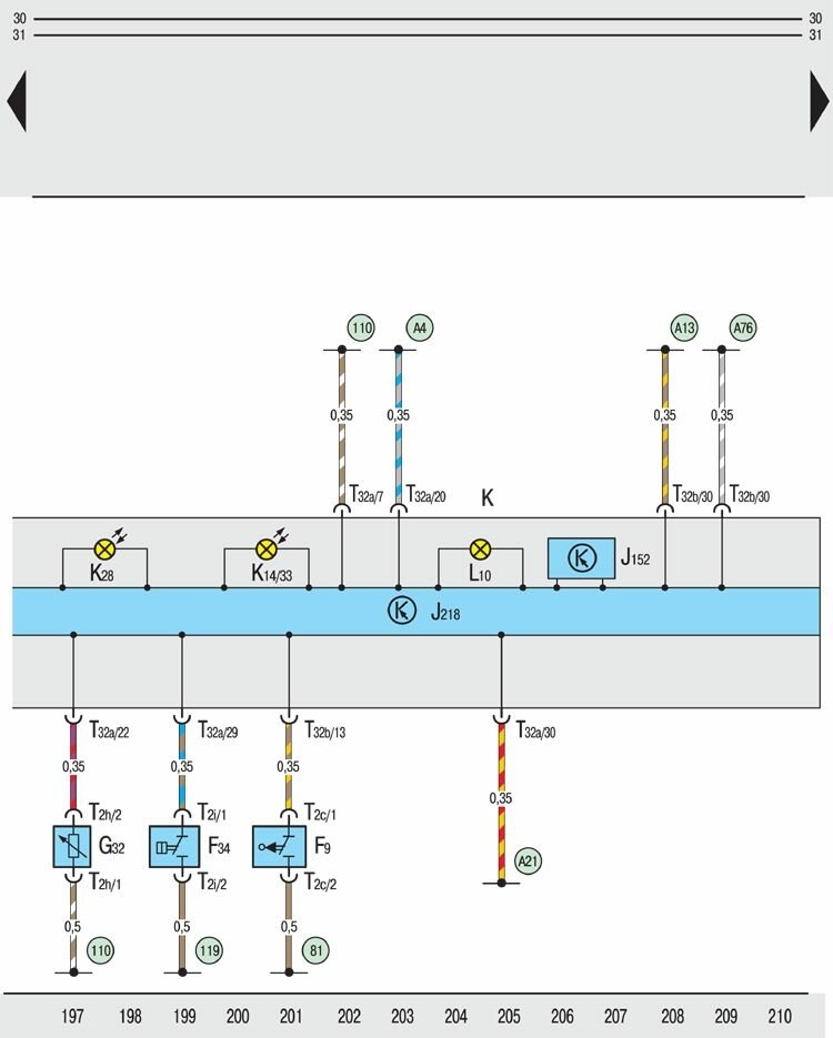 T32b – 32-контактный штекерный разъем, на панели приборов (зеленый);