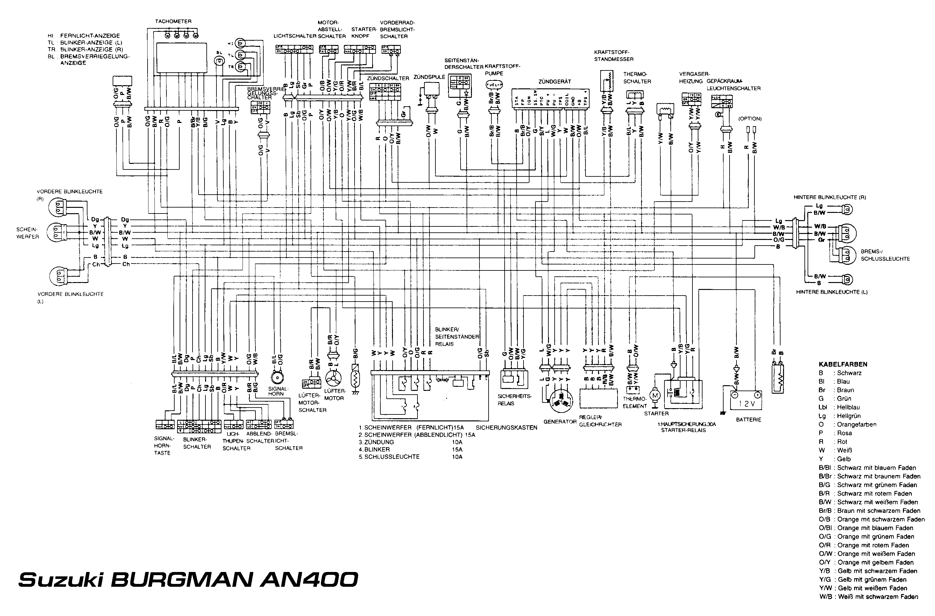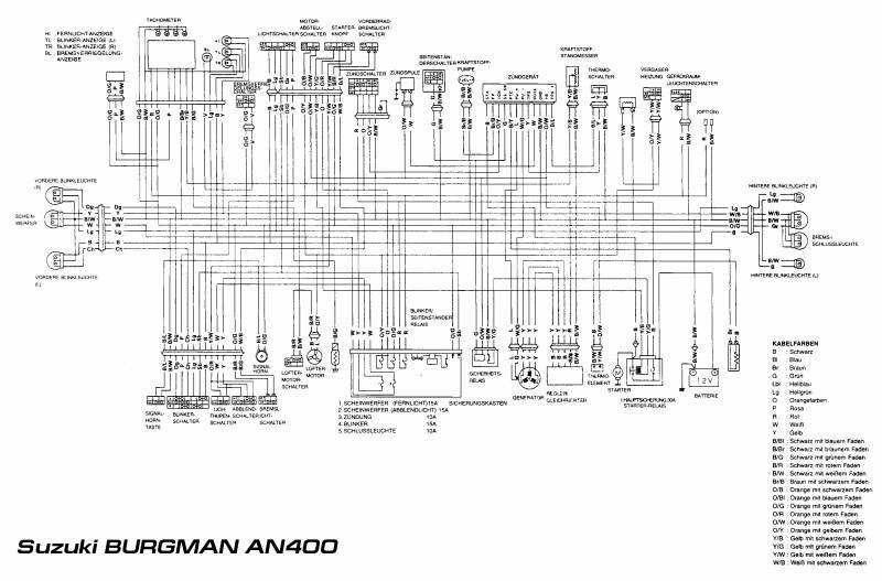 Сборник электросхем для скутеров фирмы сузуки. Представлены полные электрические схемы для скутеров сузуки Burgman, Suzuki Katana, Suzuki GN, Suzuki Street Magic и другие популярные модели. Для увеличения картинки - кликните на нужную схему.