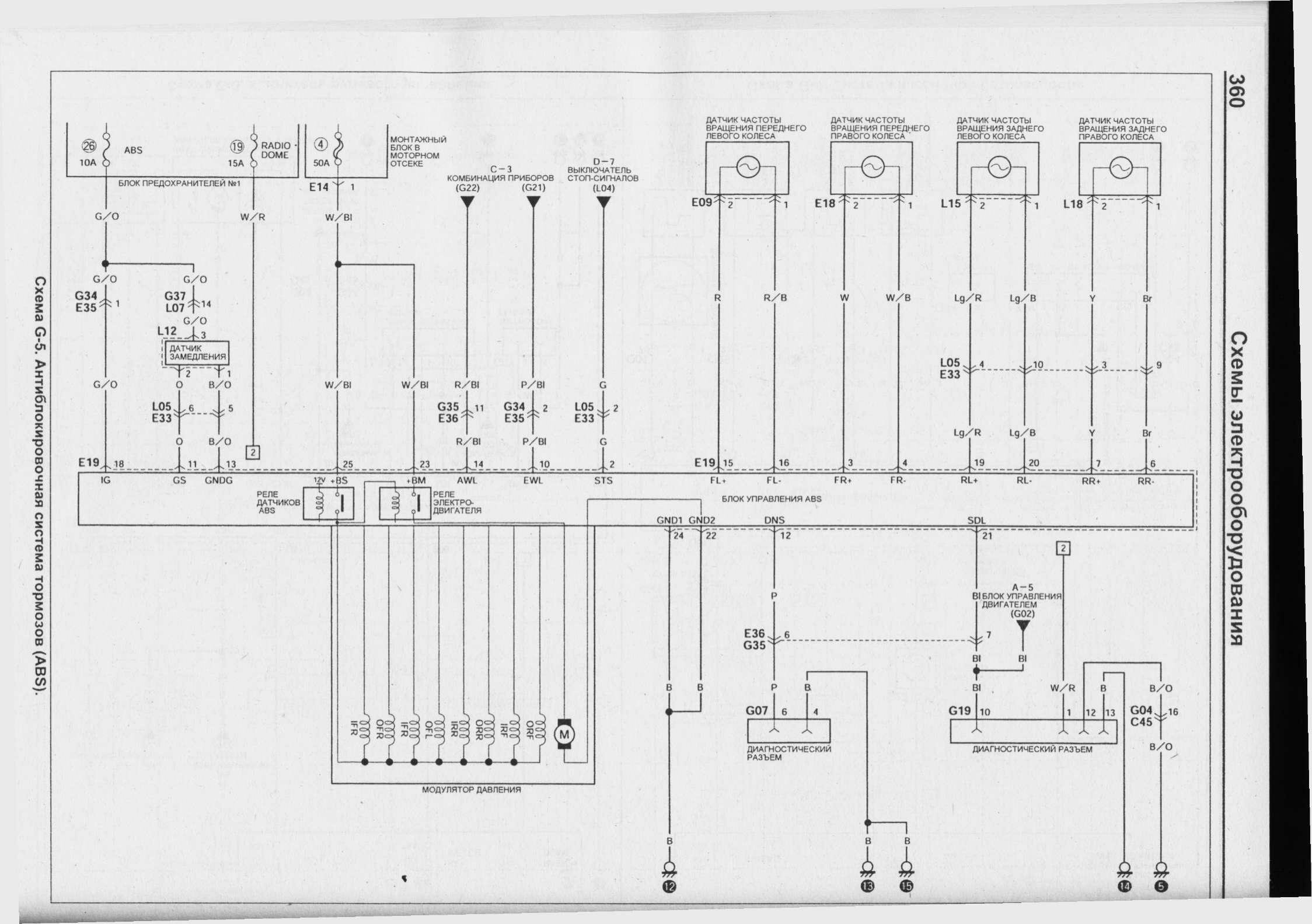 Электросхема антиблокировочной системы тормозов ABS