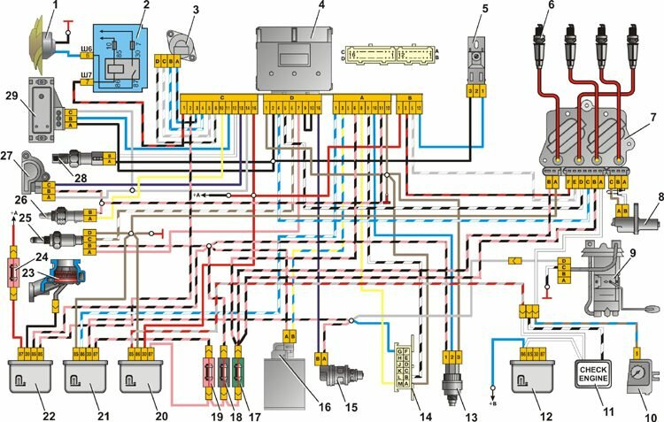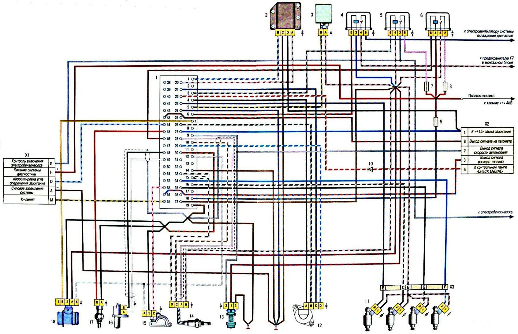 Схема системы управления двигателем ВАЗ-2104 с контроллером «Январь-5.1.3»
