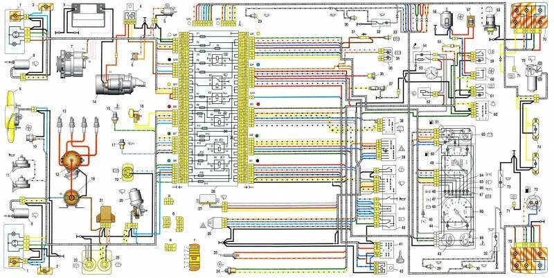 Схема ВАЗ-2104 - электропроводка и блок предохранителей. На ранних моделях автомобилей 2104 блок предохранителей составляли ненадёжные пальчиковые предохранители. Эта проблема была в держателях предохранителей, выполненных из пружин. В месте плохого контакта устройств выделялось много тепла, способного расплавить корпус блока, держатели начинали шататься и не могли хорошо зажимать предохранители, что и послужило поводом замены монтажного блока более старого образца на новые, с элементами вилочного типа.