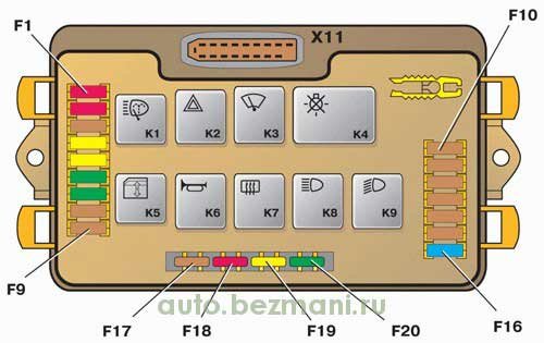 Расположение реле и предохранителей нового образца
