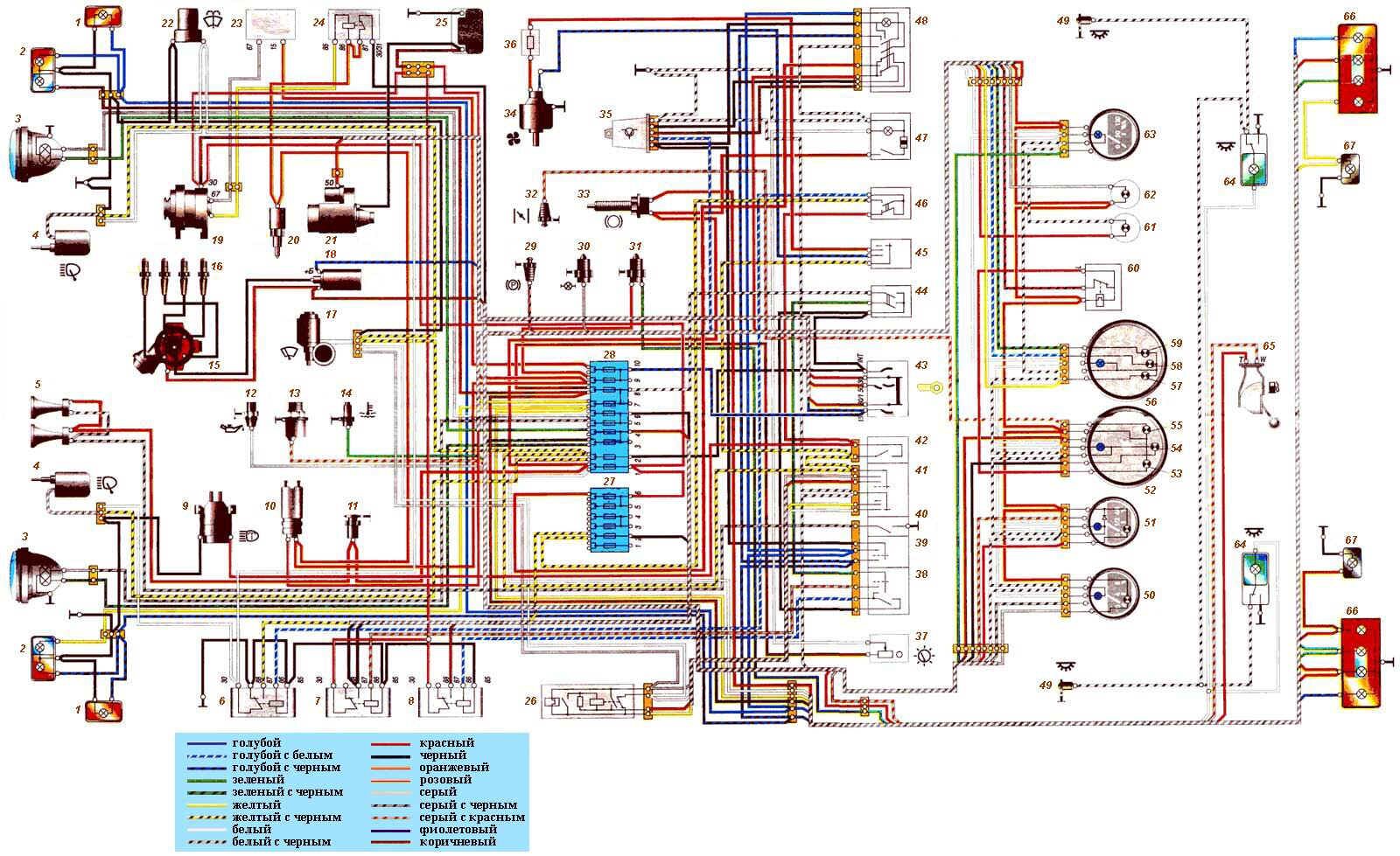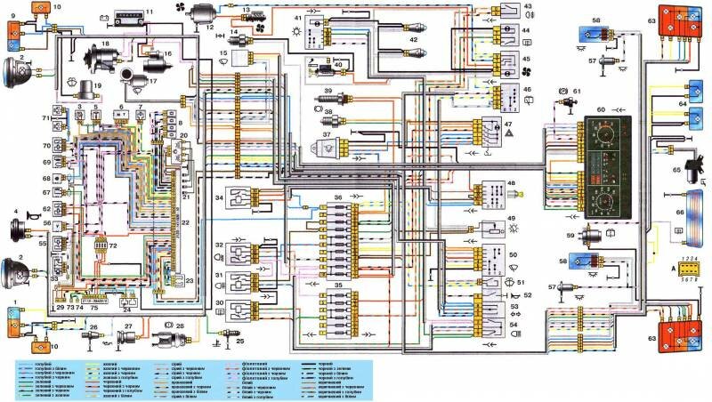 Электросхема автомобиля ВАЗ-2121 и его двух модификаций - ВАЗ-21213 и ВАЗ-21214. Схемы цветные, в отличном качестве и предоставляются для просмотра совершенно бесплатно.
